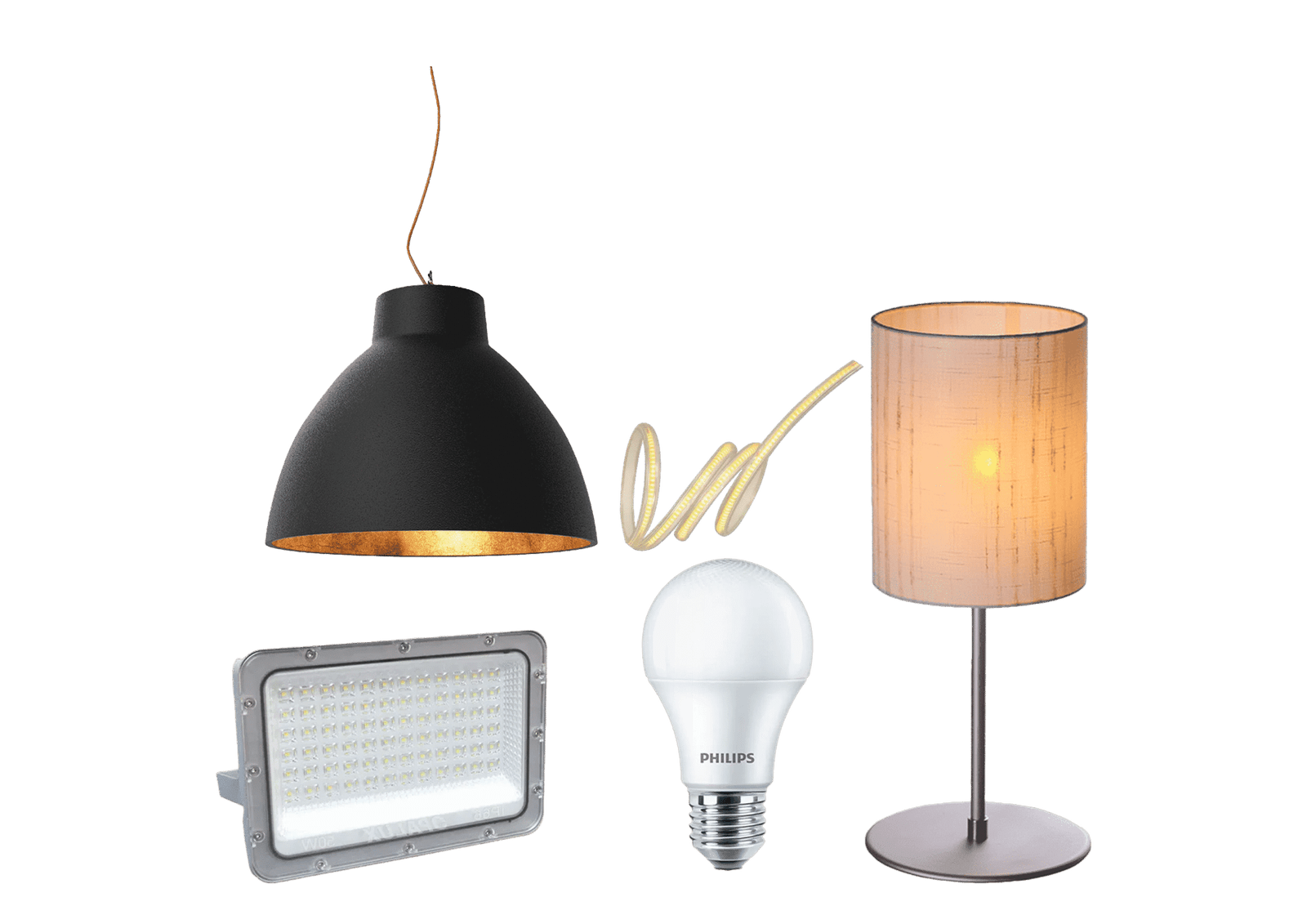 Reflectores, paneles LED y soluciones de iluminación comercial.